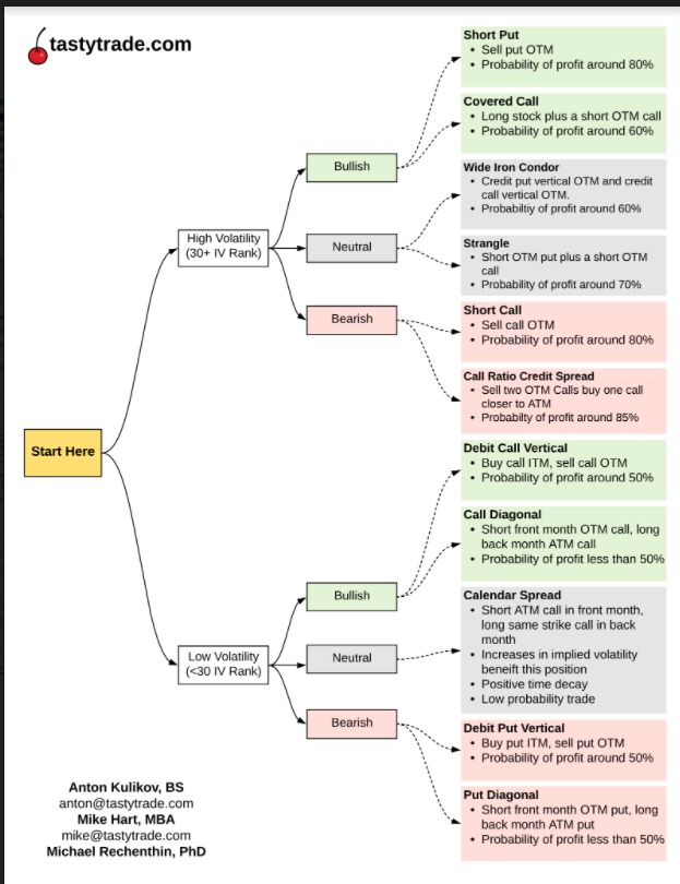 ¿No sabes cómo empezar a armar tu estrategia de opciones? ¿Tienes dudas de si usar un Iron Condor, un Strangle o un Calendar Spread? No hay problema, con esta chuletilla de TastyTrade lo apañáis rápido ;).