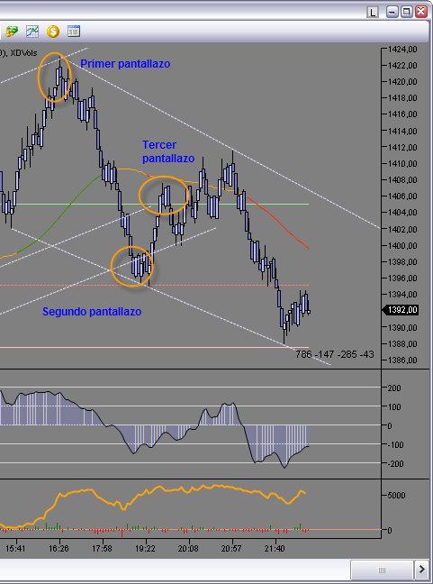 Un ejemplo en el oil de cómo afectan las deltas extremas al precio. Sólo he marcado tres señales claras aunque hay alguna más.