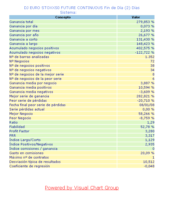 Los sistemas que he puesto trabajan sobre contratos del futuro del Eurostock 50, sin reinversión de beneficios.