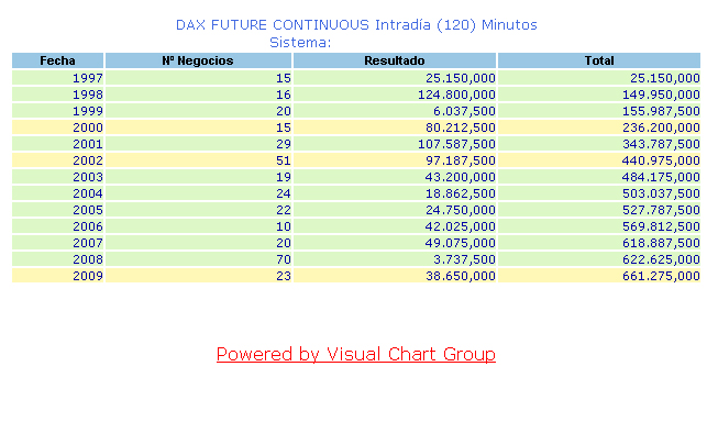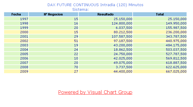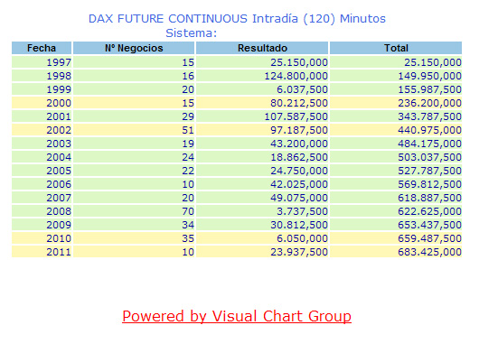 Los sistemas que utilizo suelen ir bien en los diferentes futuros sobre indices, pero en todos no puedo operar, de vez en cuando opero en el Dax. Y donde más a menudo opero es en el FIbex con este sistema y el de 60 minutos y días.