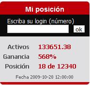 Tambien puede caerse alguno y recuperar posiciones sin hacer nada... yo ahora voy a pensar muy bien mi próxima posición que aunque haya caído a la 6ª posición, la distancia con el primero se ha recortado en casi 20.000€, así que mejor que ayer, y (esperemos) peor que mañana! :D