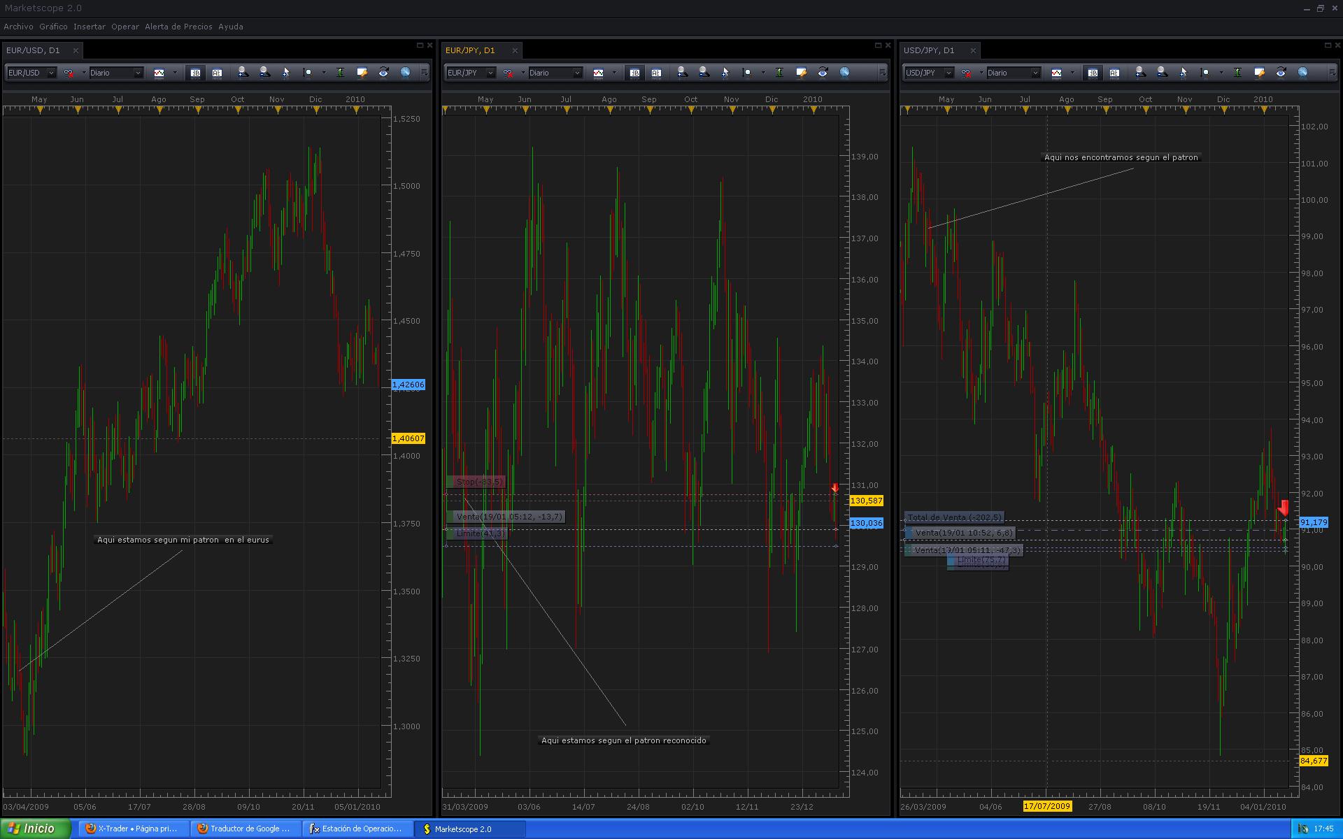 Si no seria tan guevon, lo hubiera mantenido unos pocos dias mas (hasta el viernes), y entonces no hubiera cerrado ninguna operacion en negativo... puesto que las tres cotizaciones subiran ... es mas... incluso he proyectado el patron a 15 dias vista... y... bueno... ya lo dire en otro momento, hoy me voy a dormir con toda la pantalla limpita de polvo y paja...