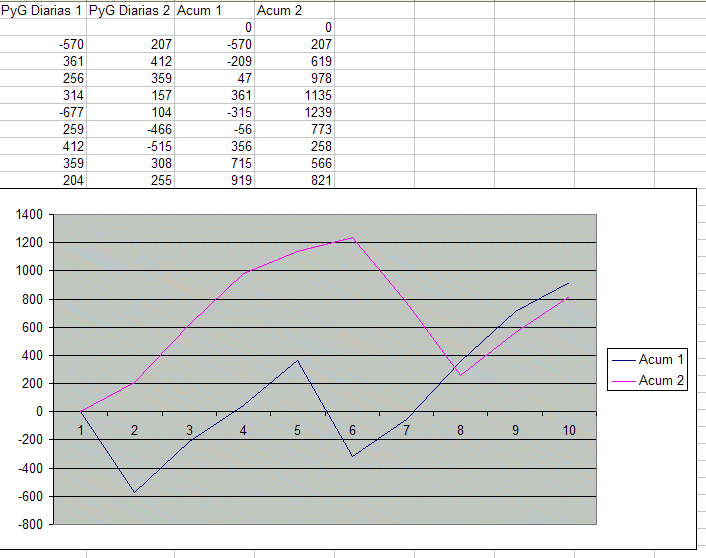 Adjunto un archivo con dos series de perdidas y ganancias, muy cortitas. Digamos que son las pYg de dos sistemas. Anda, dime cual te parece mejor y por qué.