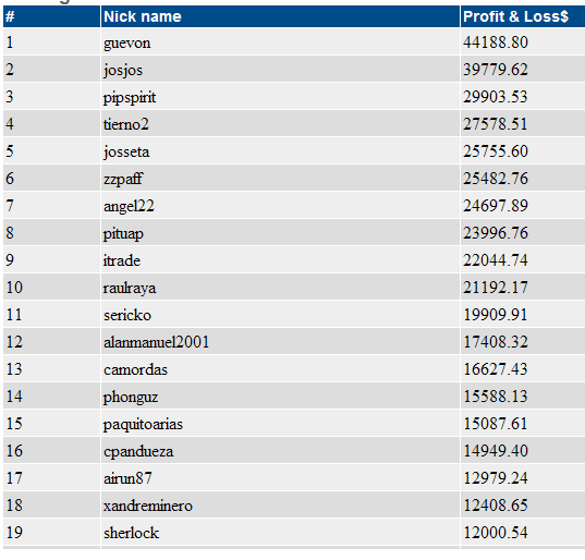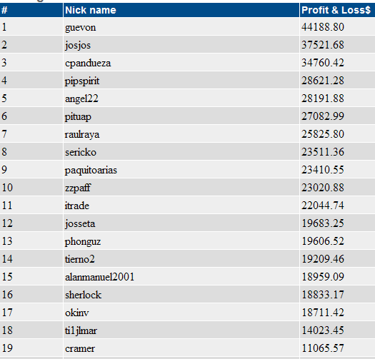Re: Torneo de Trading 2ª parte