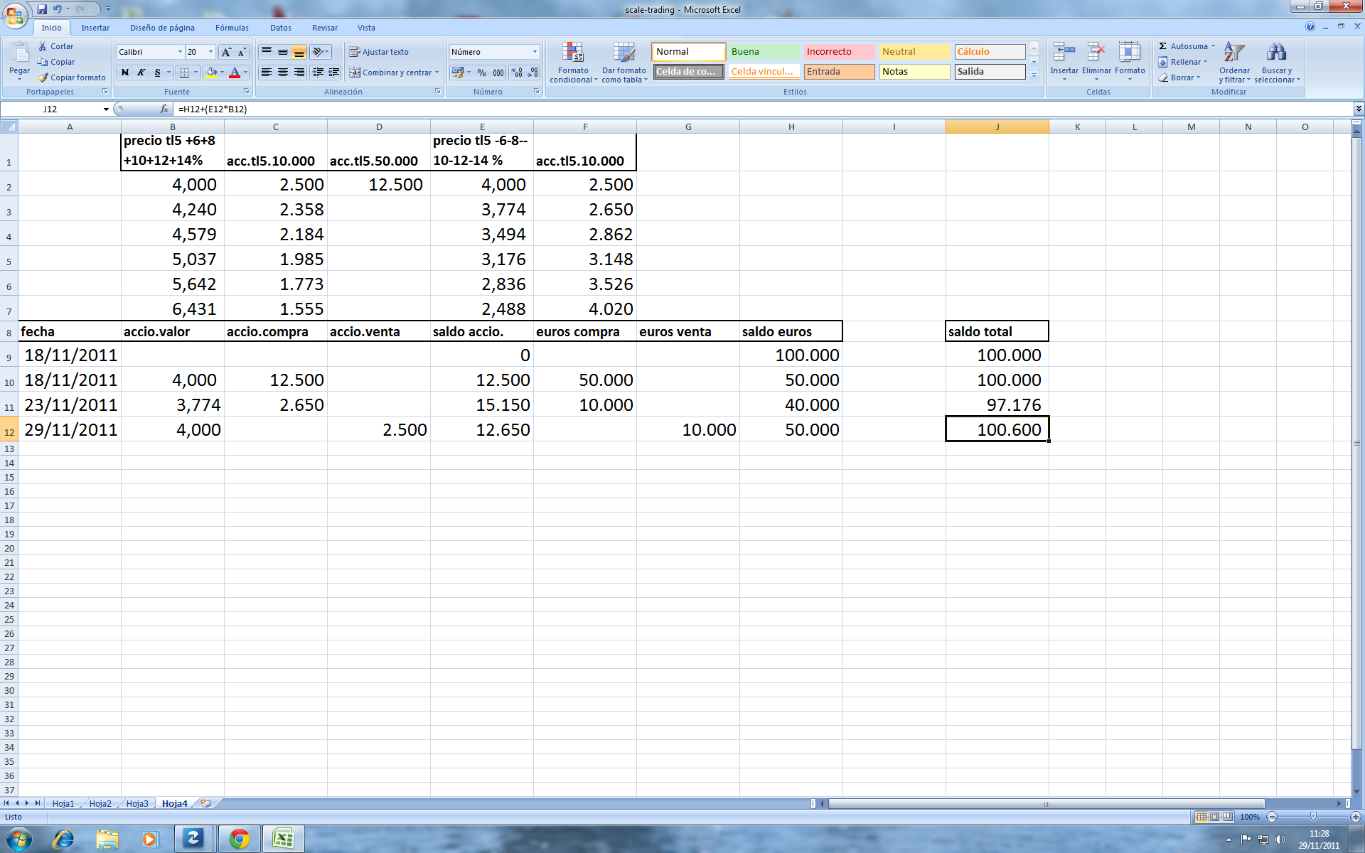 Bueno, a lo que ibamos, hoy, tl5 ha subido hasta uno de los limites que le teniamos puesto, 4,579 euros, asi que hemos procedido a vender 10.000 euros de nuestras acciones y asi nos ha quedado la cosa...