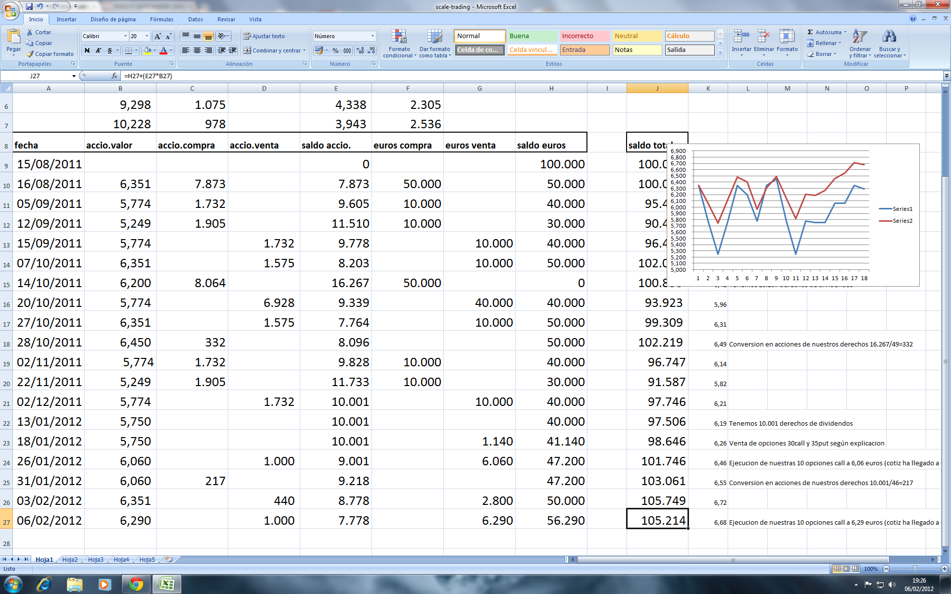 Con el mismo valor que comenzamos, con la accion, estamos un 6% mas arriba, y no han pasado ni seis meses, y eso que hemos hecho tonterias... bueno, aqui os dejo como va...