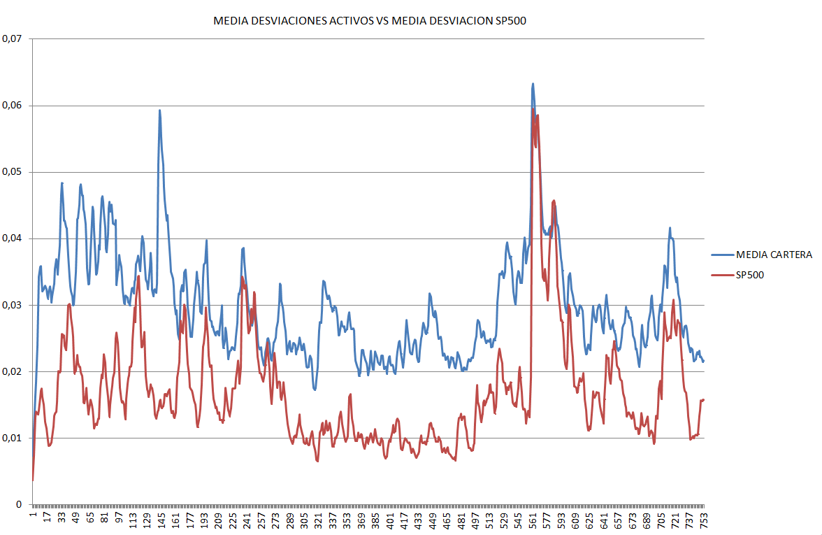 Grafico nº6 desvio medio de la cartera contra el desvio medio del sp500.