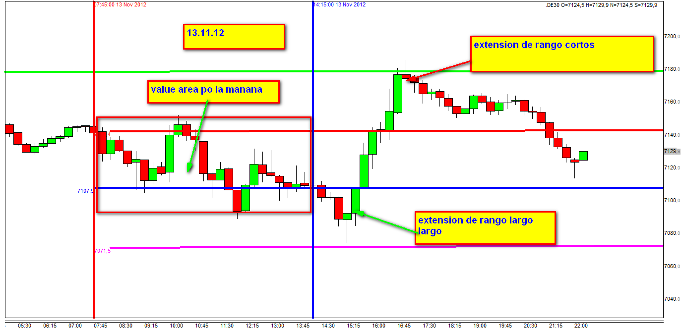 mercado de Peter Steidlmayer, se muestra en el gráfico la banda diaria del FDAX entonces
