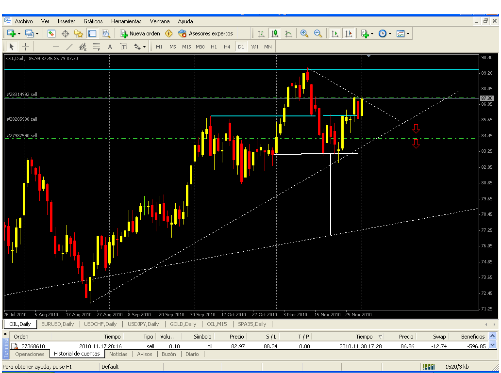 Debido al frio tan fuerte que tenemos, la gente no saca el coche por miedo a quedarse tirado, encima como este finde hay muchas cenas de fin de año, no se debe coger el coche por los excesos, con lo cual, dicen los expertos en la materia, que el oil va caer por falta de demanda (el de las calefas ya lo comparon en verano, cuando estaba baratu) sería conveniente que los largos soltasen lastre, los que estamos cortus en 89 (sustos aparte) ya estamos como aburridos y/o esto se cae pronto o delo contrario habrá que tomar las medidas oportunas ¡he dicho!