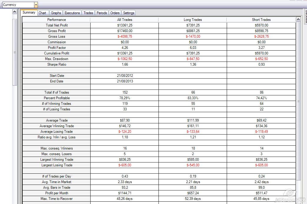 A titulo de curiosidad el sistema Terminator A 1 € el tick para el Euro en el ultimo año 2012/2013 con sharpe bastante decente y como baja el sharpe cuando le meto mas serie histórica 2009/2013 , aun así ya esta para la prueba de unos meses a ver que tal responde :(