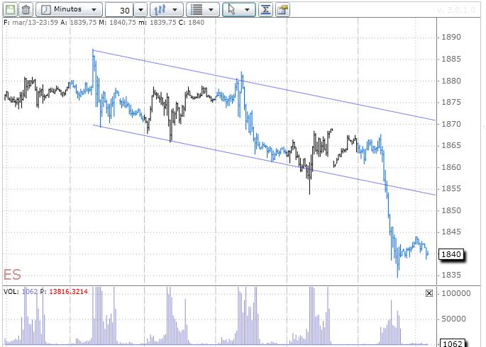 Mira qué poco le faltó para el 55. Ayer tarde acarició el 1860, y tiene dos señales de debilidad fuertes ahora.
