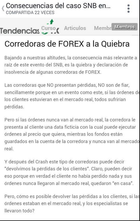 A raíz de todo lo que ha pasado con respecto a los cambios y decisiones que ha tomado el SNB (Banco Nacional de Suiza), quiebra de Alpariuk y pérdidas millonarias de otros broker me hago la siguiente pregunta: