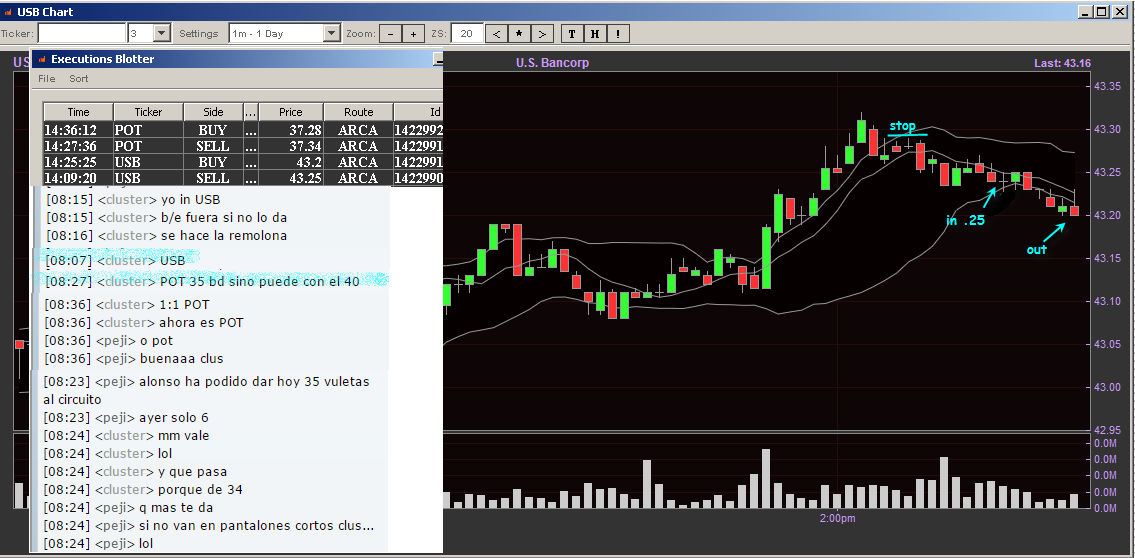 Lo que también está al orden del día son las órdenes ocultas. Decir que quieres vender 100 acciones cuando en verdad estás vendiendo 15000. Estos movimientos se ven perfectamente en el time&sales. El unico inconveniente es que como estás "mintiendo" eres el ultimo de la lista (en el ECN que te pongas y permita ordenes ocultas) al venderlas, juacs.