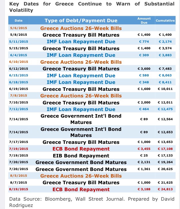 Aquí las fechas clave para Grecia en las próximas semanas, lo malo es que no viene la fecha del Grexit . Cuidadín esos días, el EURUSD puede volverse loco.