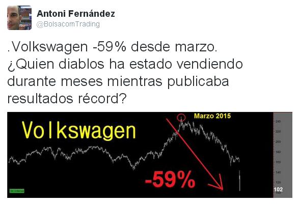 En el caso VW (en otros igual), si se tirara del hilo de quiénes han vendido realmente en esa bajada evidentemente con información privilegiada, y se metiera un palo ¡de miedo!, que es para lo que están los Reguladores, esas prácticas dejaban de ocurrir, pero están a la orden del día.