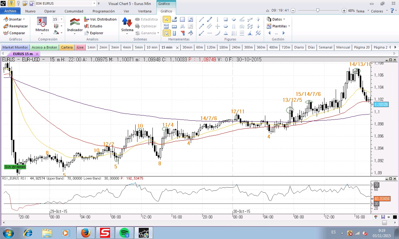 Me podrías contar las velas en 15 minutos de la subida del Eurus de hoy. Desde los mínimos del viernes, donde empezarías la cuenta? Y donde la terminarías?