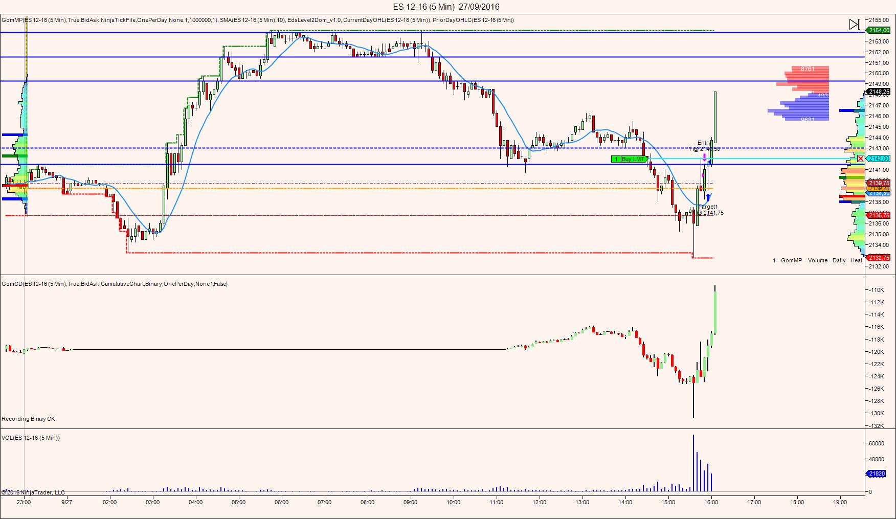 Doy por finalizado el día con perdida de poco más de un punto. Me gusta la zona de 2142 para largos. Pero acabo de quitar mi orden límite de compra y he optado por no seguir operando hoy.