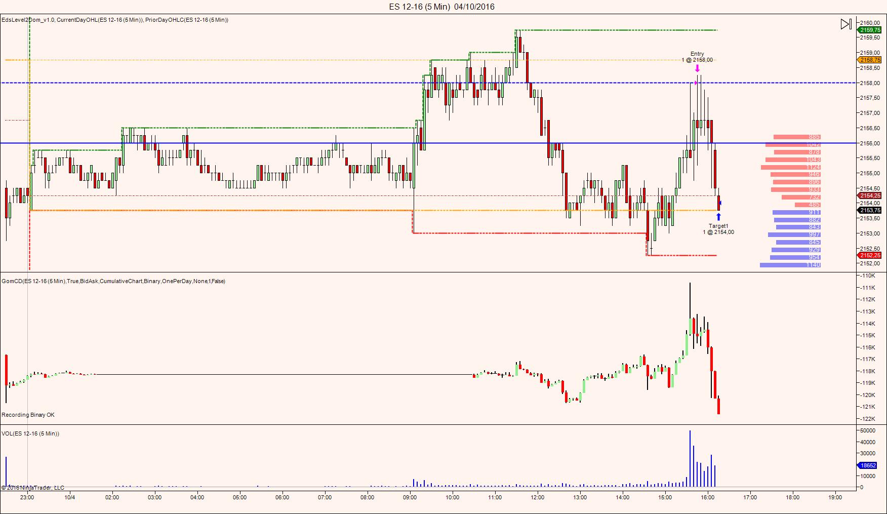 Me he quedado a dos ticks del target. y recién empiezan a entrar compradores. Pero de momento los vendedores mantenemos el control. Espero no me obliguen a cerrar mi operación antes de llegar al target, para mi esta es la decisión más dura de tomar. Cuando veo una señal en contra de mi operativa y tengo que decidir que hacer con el trade.