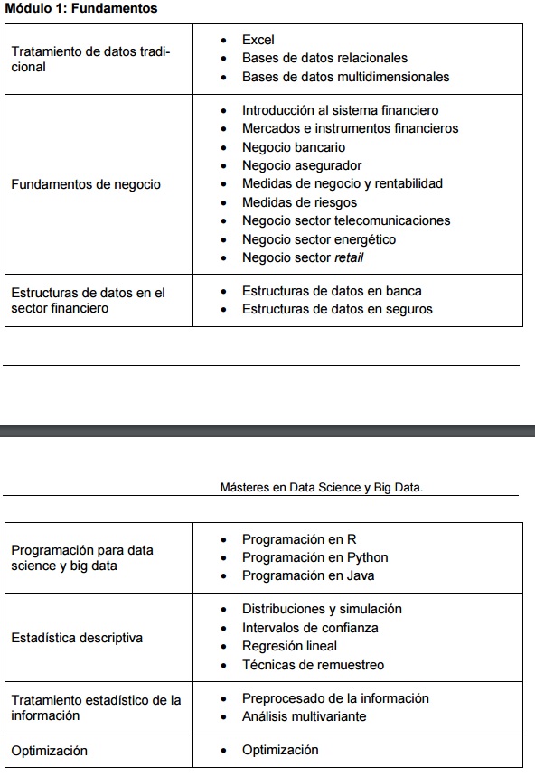 Les dejo aquí el temario del master (postgrado universitario) que estoy cursando actualmente. Llevo 2 semanas de clase.