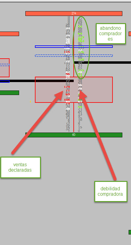 Entiendo que has visto como hay un abandono de compradores descaradisimo, + una venta declarada + una debilidad compradora, sin embargo has esperado a la siguiente vela, que ha hecho que un stop de 10 puntos se conviertan en 40... ( has visto el MP pero no el atractor ).