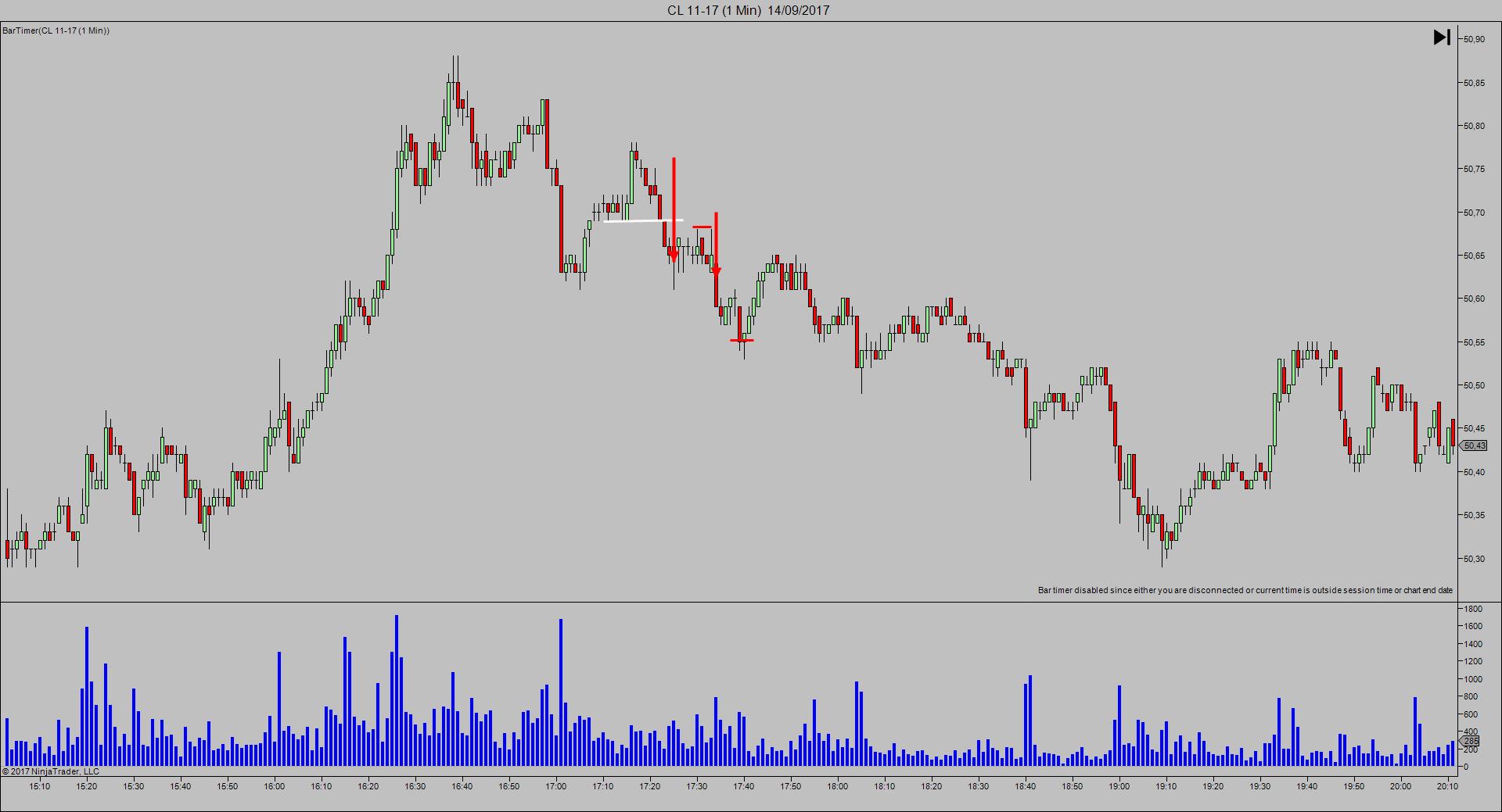 2. Mi primer corto entro tarde, demasiado abajo. Al recoger las velas, acorté el stop al máximo de la vela donde entré, con lo que me saltó por un tick en el tercer martillo.