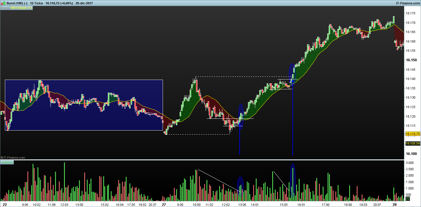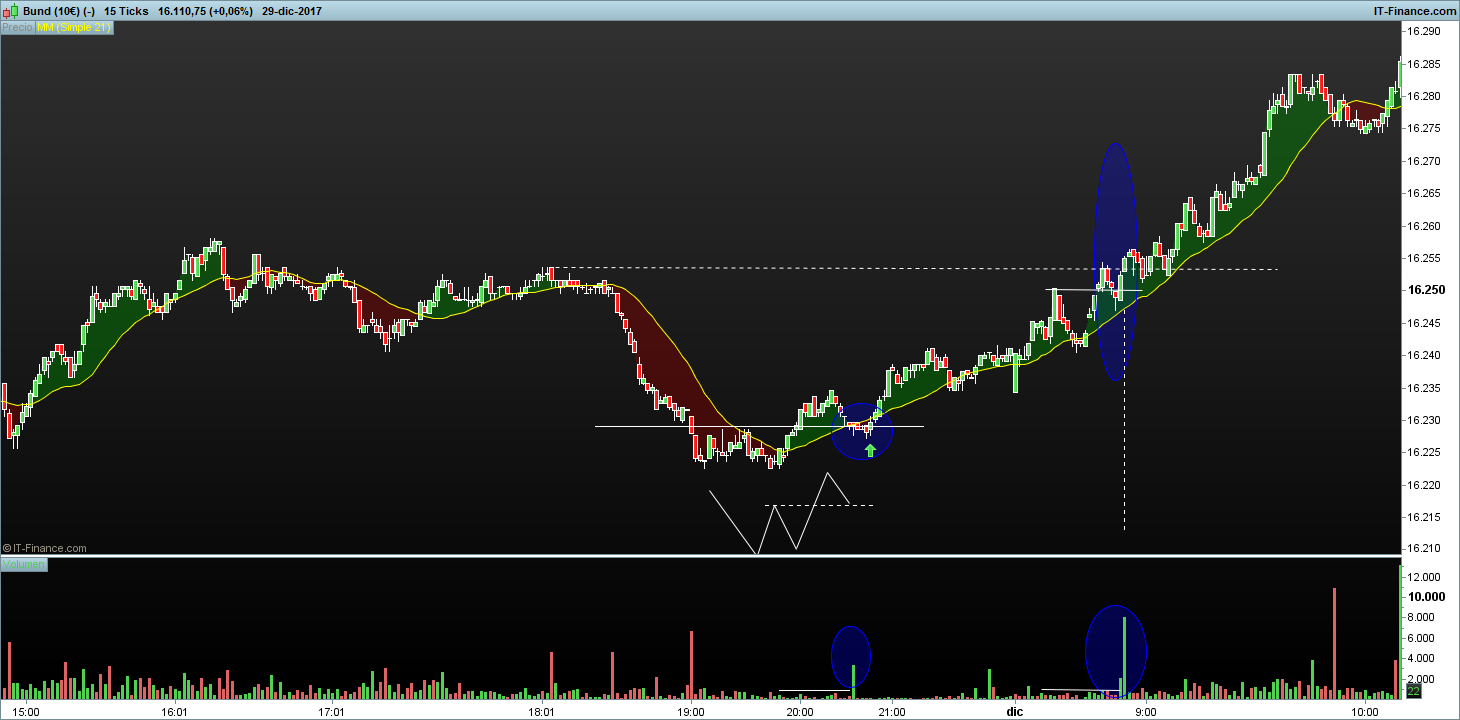 En este caso se trabaja con la estructura en grafica de 15 ticks para el bono alemán