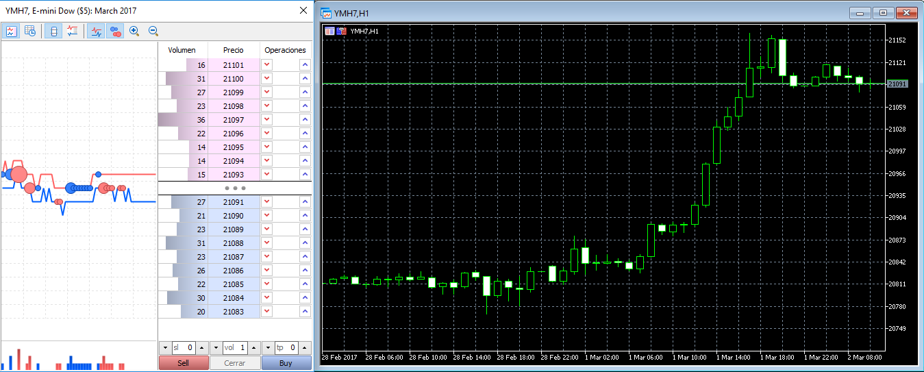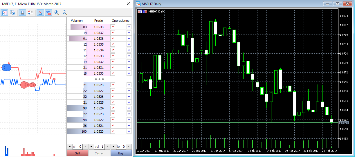 El volumen se corresponde con el acumulado que muestra el CME y el libro de órdenes contiene toda la info de las posiciones reales, tal y como se ve en el mercado.