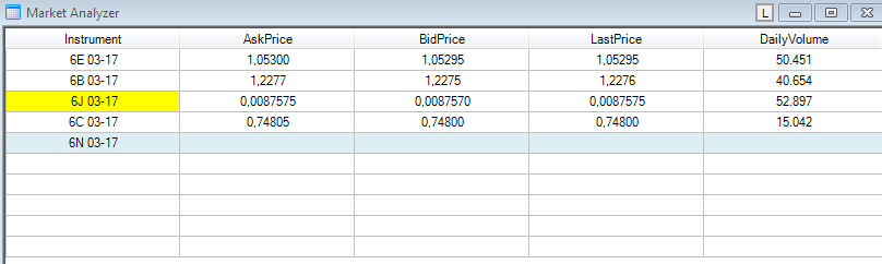 Ya me habéis picado con este tema y me he instalado la demo. Analizando los símbolos he visto que Amp Futures no ofrece los futuros grandes sobre divisas, solo los micro (por ejemplo, el M6E que el micro del EuroFX).Gamelu escribió:Confirmado, el volumen de futuros en mt4 no es real, ahora mismo en 1m en el 6e en mt5 (ampfutures) 8 y en ninja 302 para que os hagáis una idea....