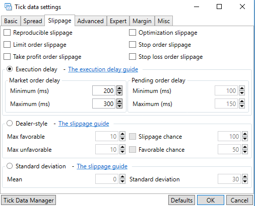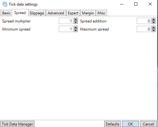 De todos modos, ¿te has planteado pillarte el Tick Data Suite? Te permite hacer backtests con históricos de spread de diferentes proveedores (TrueFX, Dukascopy, etc.) y con la posibilidad de alterarlos metiendo diferentes escenarios, como puedes ver en los siguientes pantallazos: