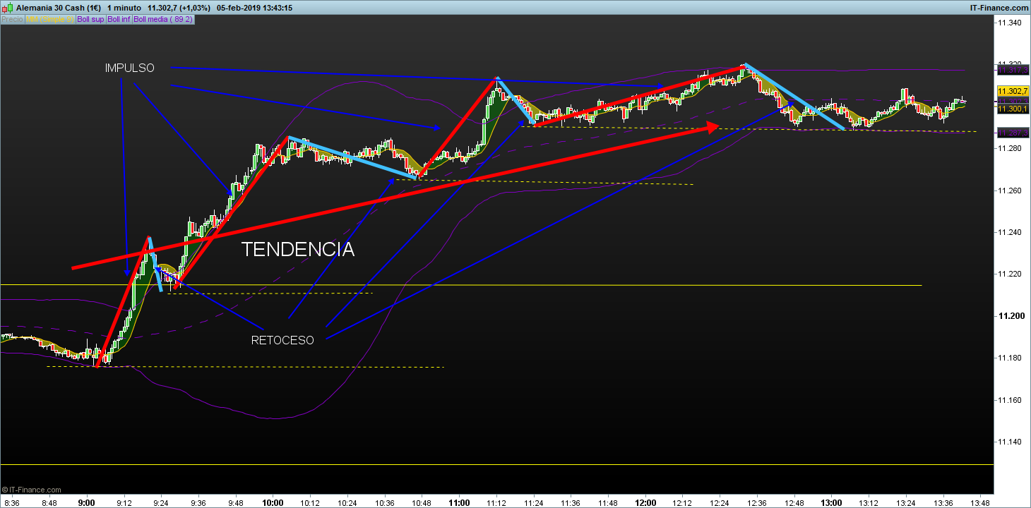 En dax en 5 m donde te marco la entrada 2, mira donde la da respecto a la media de 9 periodos y la inclinación que lleva cuando el precio la toca
