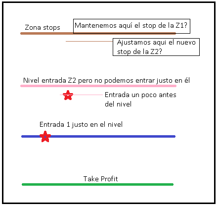 Te adjunto imagen con una duda sobre el tratamiento de los stops, cuando conseguimos entrar en la Z1 perfectos, pero en cambio, en la Z2 no lo hacemos tan perfecto. Mi duda es:
