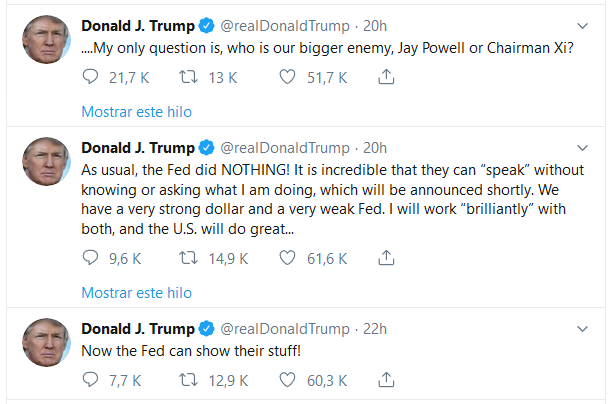 Fijaos en la secuencia: primero amenaza a la Fed porque no hace lo que él quiere: