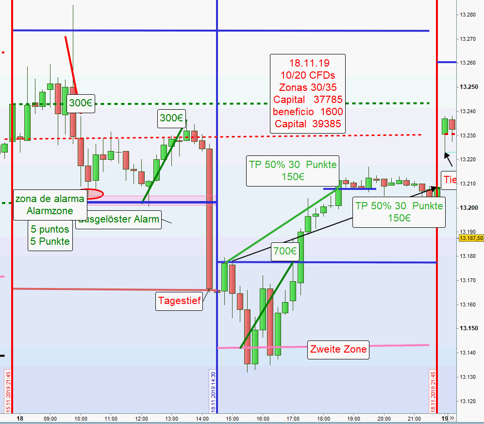 Con un dia de perdida se logró un resultado positivo de € 4340. Esto permite aumentar los CFDs a 15 y 30 a partir del lunes.