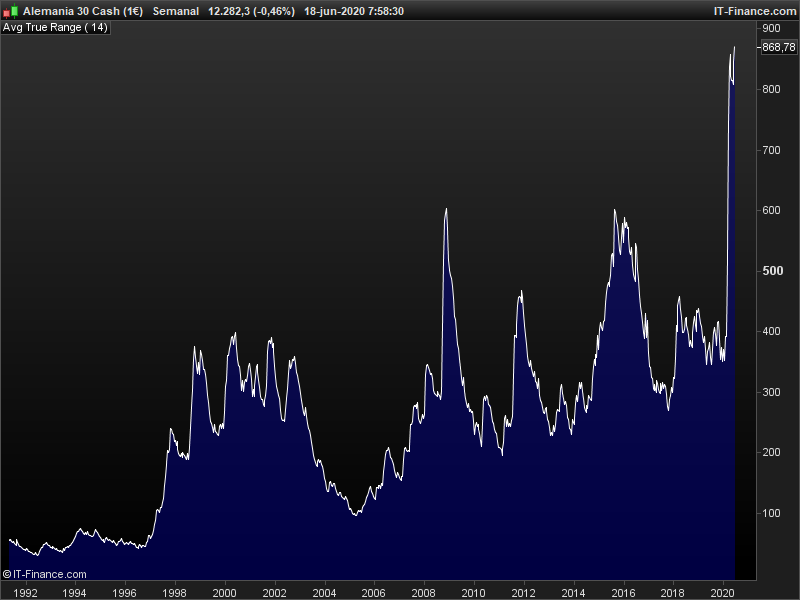 El ATR semanal 2017-2018 estaba en 400puntos apx y desde marzo de 2020 esta practicamente al doble 800 puntos apx