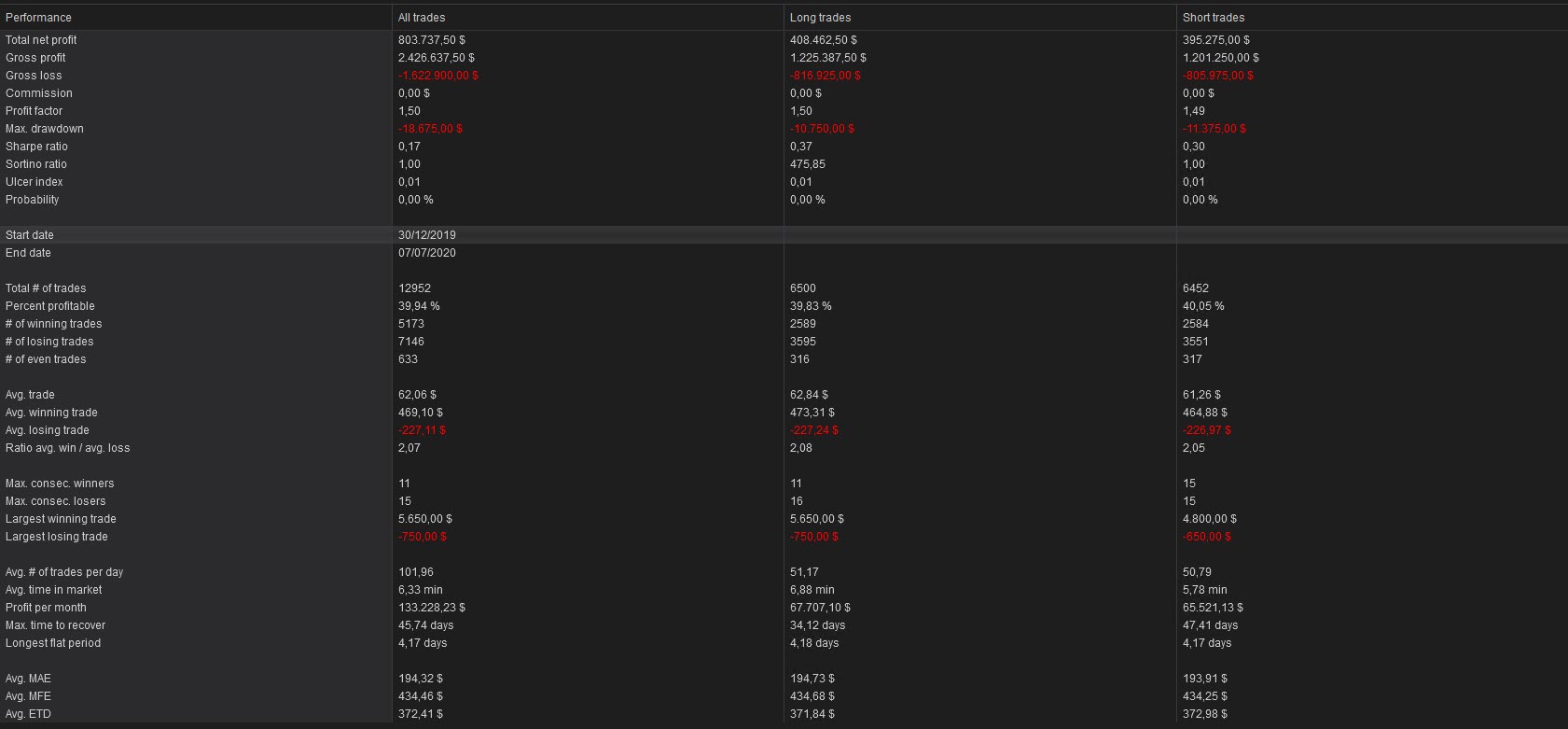 Solo una observacion, veo que el sistema es nombrado como tipo grid (no me di el trabajo de comprobarlo) y como tal sus profit factor es mas alto, hasta que llegue el "caso malo".corman escribió: 06 Jul 2020 22:06 .. Tiene un profit factor de 1.85 y da los mismos resultados en las compras que en las ventas. La prueba es en GBPUSD, pero en el EUROUSD similares datos. ...