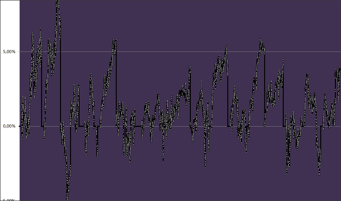 Sí Rango entre otras cosas, porque es evidente que se ve cierta rentabilidad repetitiva, que siempre va unida a una volatilidad dada y se pueden establecer como una barras de medida por volatilidad para poner objetivos de rentabilidad semanal, pero a parte de esto, también nos sirve la distribución de rentabilidad para analizar que ha cambiado de ahora a 20 años atrás con la misma señal y ese es el valor más importante que le doy, para ver si se le puede sacar chicha al algoritmo. ESte último es del 2020
