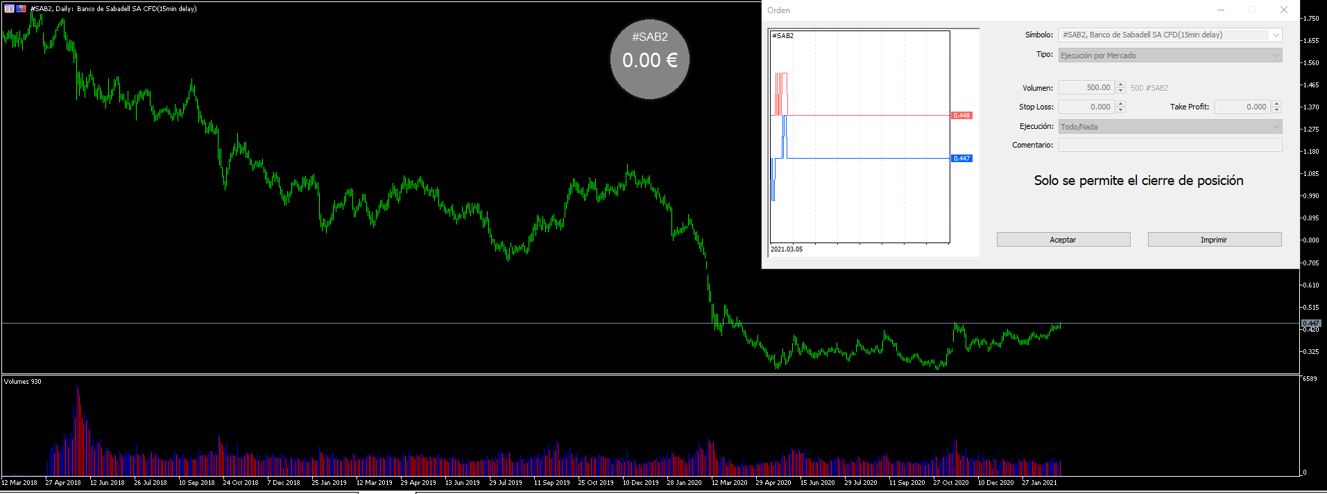 No es que yo quiera pensar mal ni ninguna de esas cosas tan habituales. Pero hoy he intentado comprar cfd de Sabadell el cual está haciendo un suelo de libro y no me lo permiten. No sé cómo será en otros brokers.