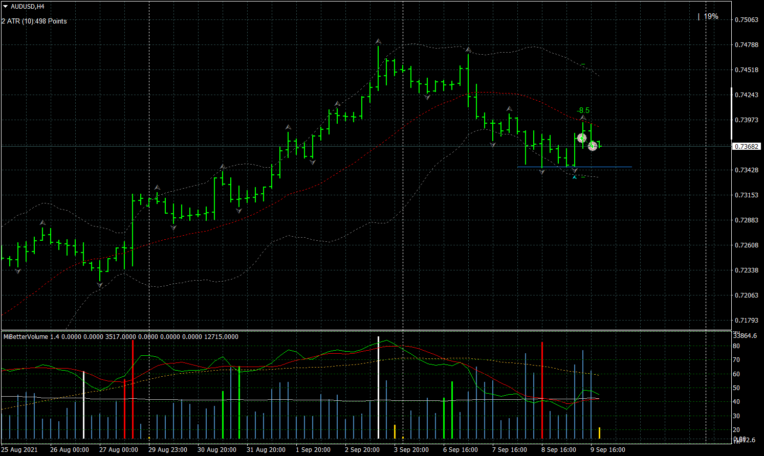 Estoy de acuerdo. No estaba en mis planes entrar en este par pero vi esto y me lancé. Es cierto lo que dices, un stop muy pequeño con el mismo tamaño que donde esta ahora me permite el lujo de que me lo toque sin que apenas dañe la cuenta por que el ratio beneficio/ riesgo potencial es muy alto. Lo que pasa es que estoy utilizando barras al cierre en H4 y ese criterio no me permite hacer lo que estamos comentando. Para hacer una entrada mas temprana tendría que haber bajado a H1, y aquí hubiera podido entrar donde señalo en el gráfico a 0,7360, por que tengo que seguir una disciplina de entrada. Pero para hacer eso hubiera tenido que estar pendiente del gráfico de una hora y dedicar mi atención solo a este par. En H4 he entrado a 0,7677, una diferencia de 17 puntos.