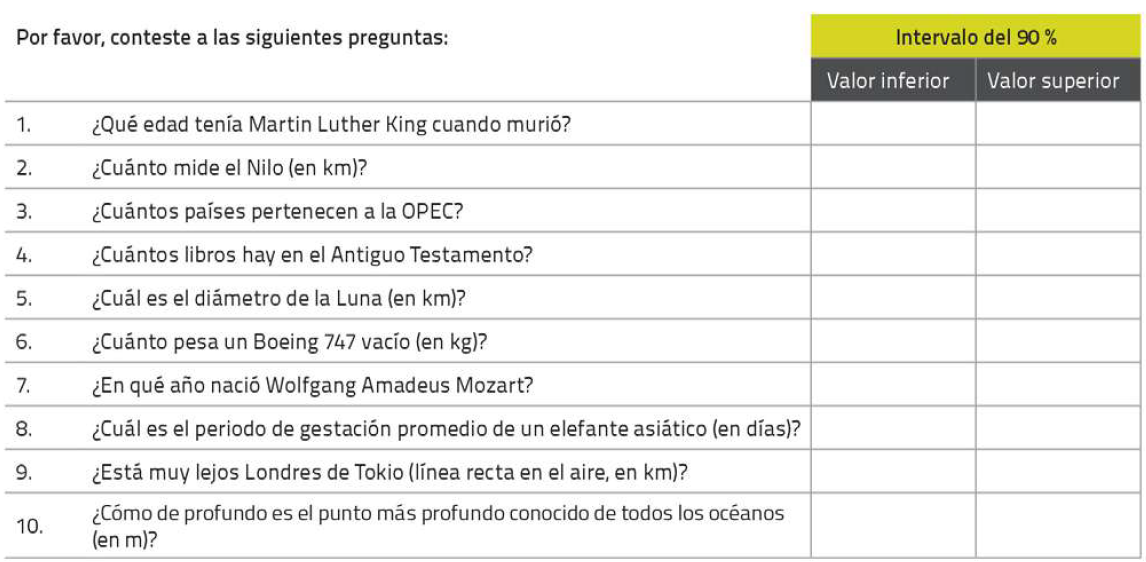 La idea del test que tratar de determinar si los humanos por naturaleza son demasiado confiados en sus opiniones y valoraciones, un sesgo cognitivo que sin duda es bastante dañino para un trader. En el estudio realizado por estos autores, con una muestra de más de 1.000 participantes, lo que cabía esperar como resultado es que la mayoría de los encuestados acertarán 9 de 10 intervalos. Sin embargo, los resultados mostraron que tan solo el 1% de los participantes logró acertar 9, siendo habitual que fallaran entre 4 y 7 preguntas.