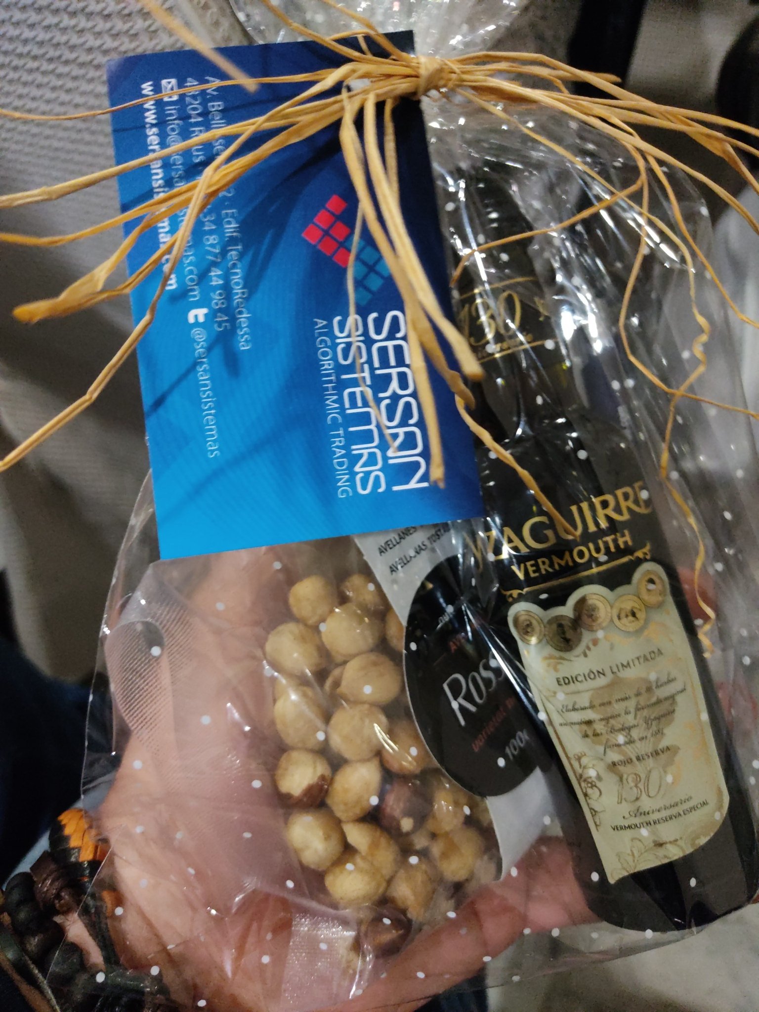 Y por si fuera poco... tras el sorteo Sersan Sistemas tuvo un excelente detalle con todos los asistentes, regalando una bolsita con vermut y avellanas tostadas.