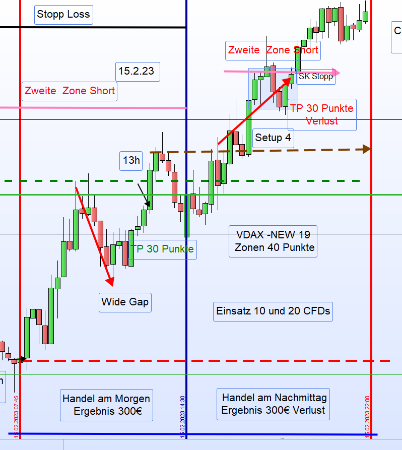 buenas Elarvi, parece ser que George Ha cambiado la regla del doble gap...al final después de tantos años da un poco igual pues ya conoces bastante bien el Dax, pero bueno, creo que ahora nos fijamos en la vela de las 9, como está por encima del precio de apertura y es un gap bajista...dibujamos las zonas largas normales y la primera corta es al doble de una zona.elarvi escribió: 12 Feb 2023 11:57