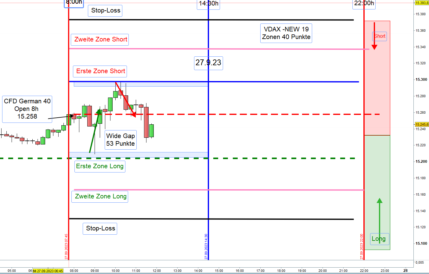 La correlación entre el FDAX y los futuros americanos es muy alta, esta mañana, puedes ver en la imagen de Georg que estaba todo verde en los futuros americanos, por lo que la corrección (bajada) de las 9:00 del FDAX daba pistas de que podía rebotar, además ha cumplido perfectamente lo comentado en las reglas de Georg sobre el Wide GAP. De todas formas no siempre es todo tan fácil.