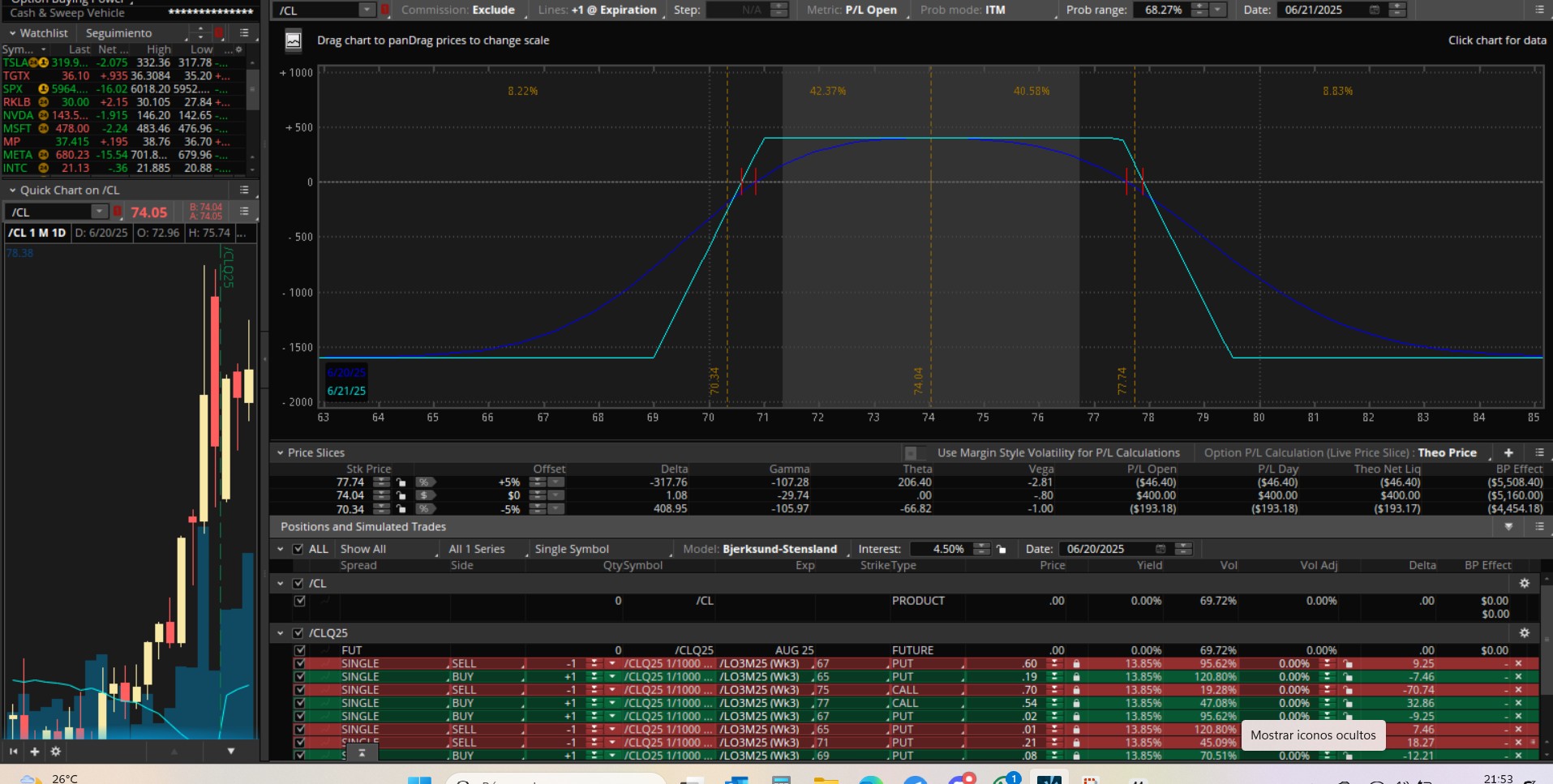 Me lance, pero en la apertura se fue con un fuerte gap, y las ordenes se me cancelaron. A lo largo del dia lo revise y ya no quise entrar en las opciones sobre futuro. Mañana, antes de la apertura, si pinta bien, mirare las opciones de USO (ETF).Ya lo he usado alguna vez. Es pequeño y mas manejable 😉