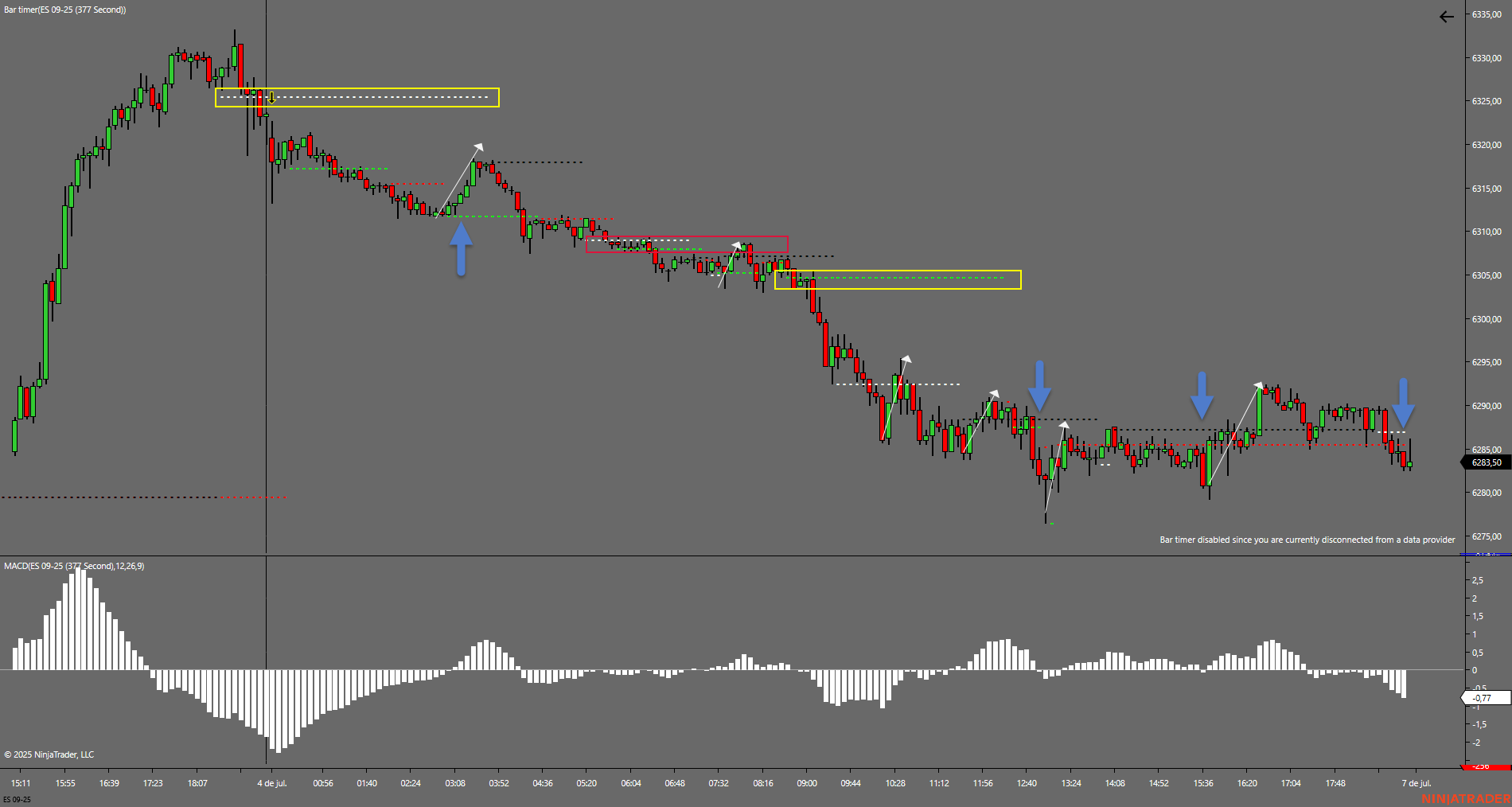 Sesiones de ayer y hoy comparando con un TF fijo de 5m. 2 Stop saltados en el de 5 m.Esto no ocurre en el TF matemático.