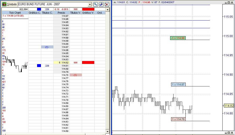 Hoy 30 de marzo de 2.007 he grabado un nuevo video, he decidido hacerlo con dos contratos de dos futuros distintos, ibex y bund, el video dura 5 minutos, al final he tenido que cerrar el video antes de que se cerrara el contrato del bund ya que el video ya duraba 5 minutos y los videos de mas duración se hacen muy pesados, pero el contrato se cerró a 115,10 a los 10 minutos de terminar el video, despues de haber bajado el objetivo inicial de beneficios.