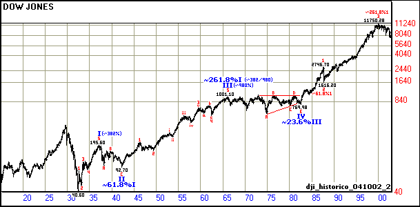 Tu razonamiento es correcto, al utilizar la gráfica semilogaritmica las relaciones porcentuales entre ondas debería haberlas efectuado también porcentualmente, tal y como solía hacer antiguamente, te pego un ejemplo del año 2002 del DJI: