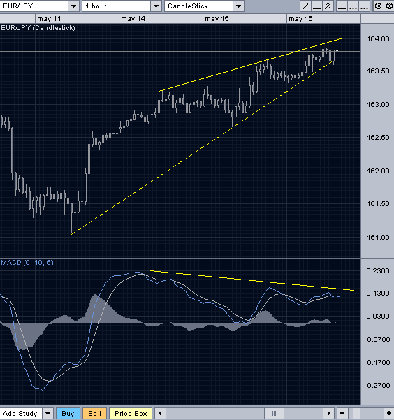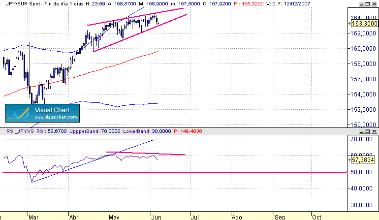 Ná mas que subir un grafiquín del par susodicho. Está en niveles de PS y no veo manera de que siga subiendo sin corregir. Lo que más me ha llamado la atención es la pauta que parece dibujar, que parece terminal con sus correspondientes divergencias bajistas.
