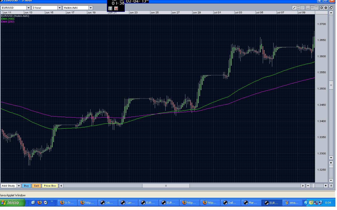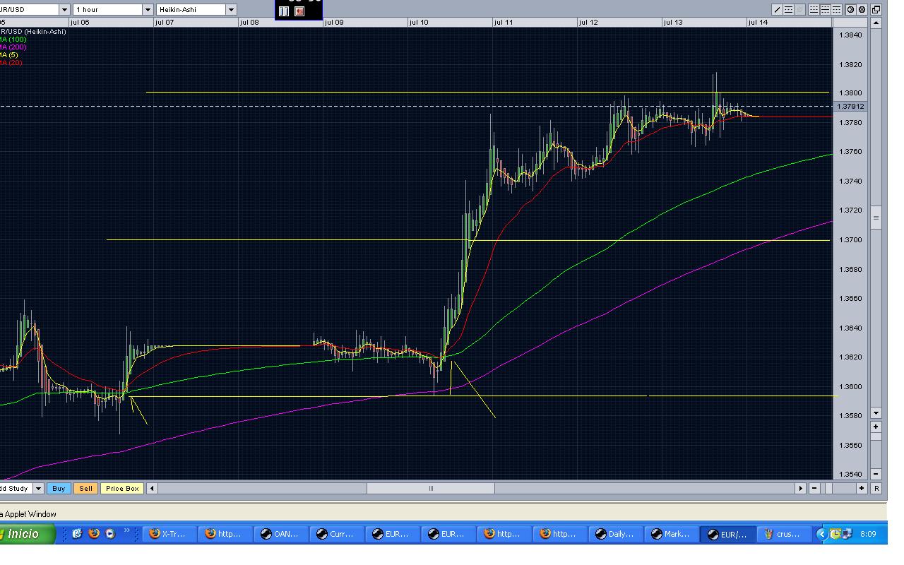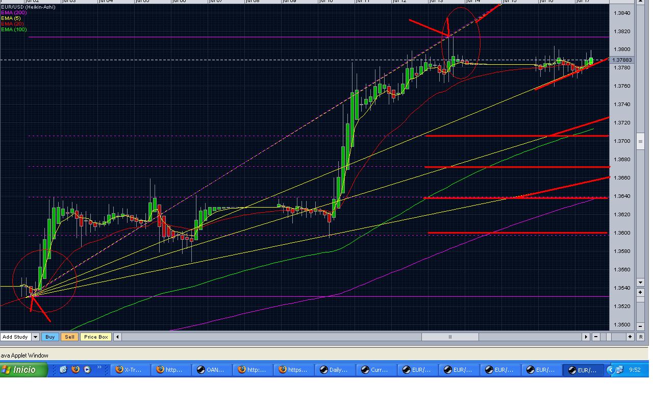 Utilizo Ema 5 y 20 para las señales.. Pero lo hago UNICAMENTE CON LA TENDENCIA
