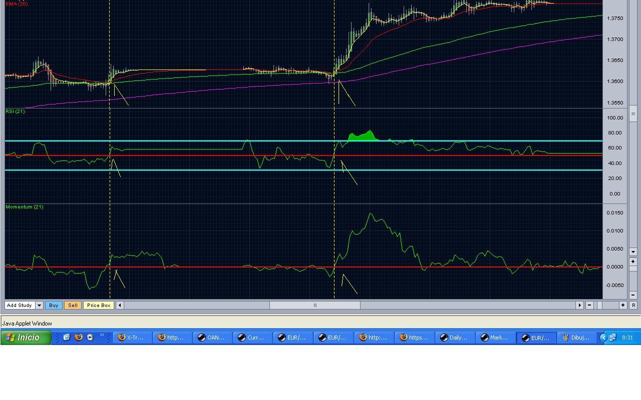suelo Utilizar RSI y MOMENTUN en 21 Periodos. ( para quitar mas ruido)