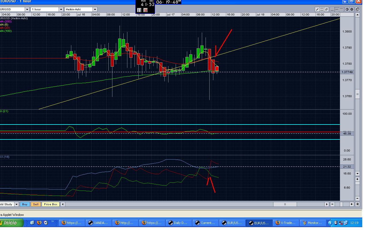 Si la notica tiene buen resultado el precio del Euro puede caer hasta 1.3745 (ema 200)